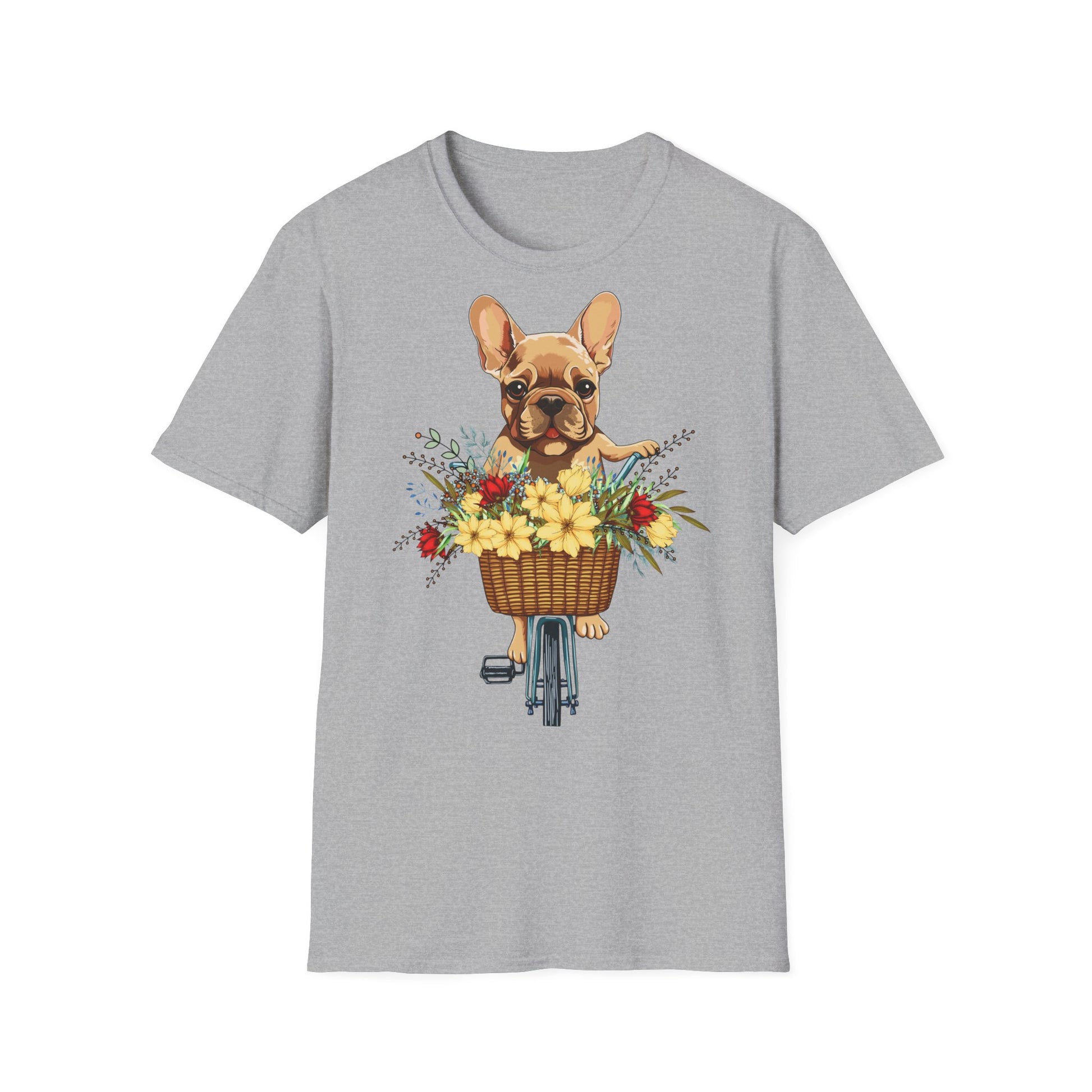 Experience the Joy of a Sunny Day Out with the 'French Bulldog Floral Ride' T-Shirt. This Charming Tee Features an Adorable French Bulldog Sitting in a Bicycle Basket Overflowing with Bright, Beautiful Flowers. Perfect for Dog Lovers and Outdoor Enthusiasts, This Soft and Comfortable Shirt is Ideal for Casual Wear or as a Delightful Gift. Let the Cute Frenchie and Vibrant Florals Add a Splash of Fun and Color to Your Wardrobe!