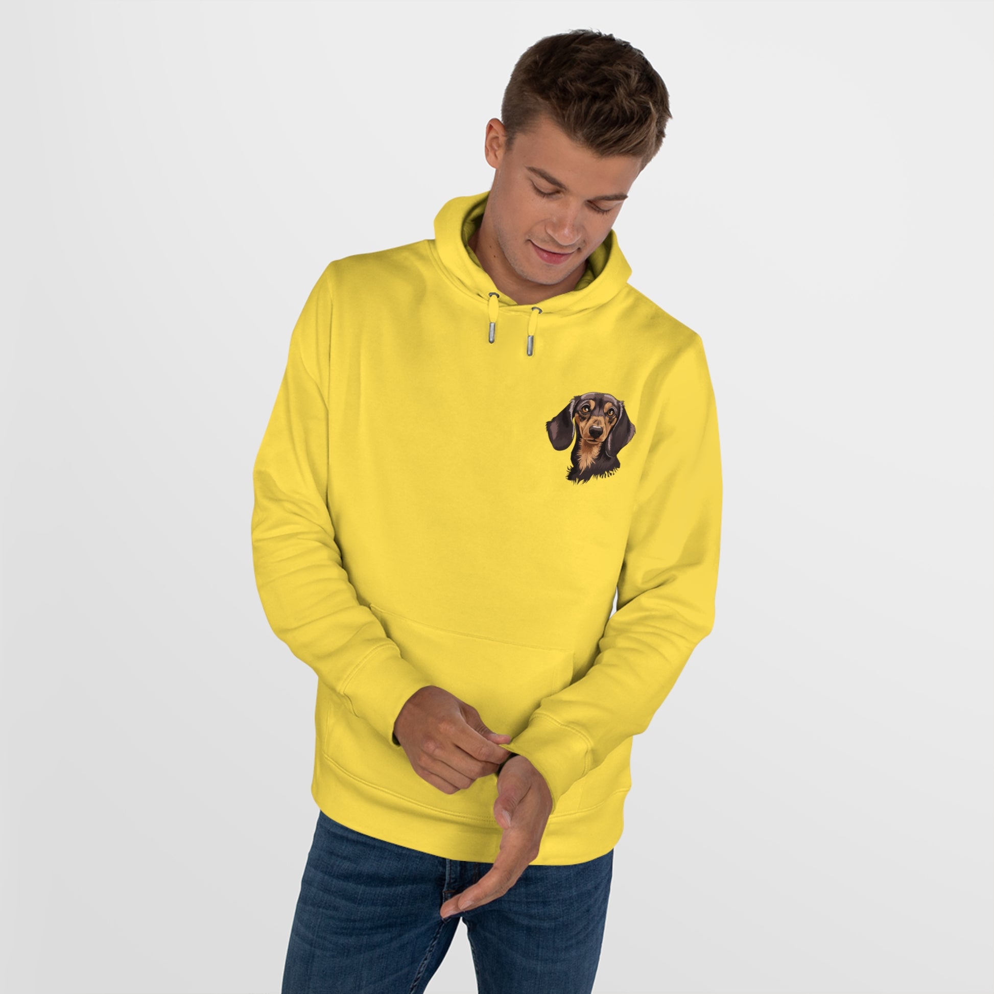 Stay warm and stylish with our fleece-lined boxer-super hooded sweatshirt. Made of soft touch fabric, it boasts a spacious front pocket and is pre-shrunk to maintain its shape. Emblazoned with adorable prints of beloved pet, it's the perfect cozy addition to your winter wardrobe.