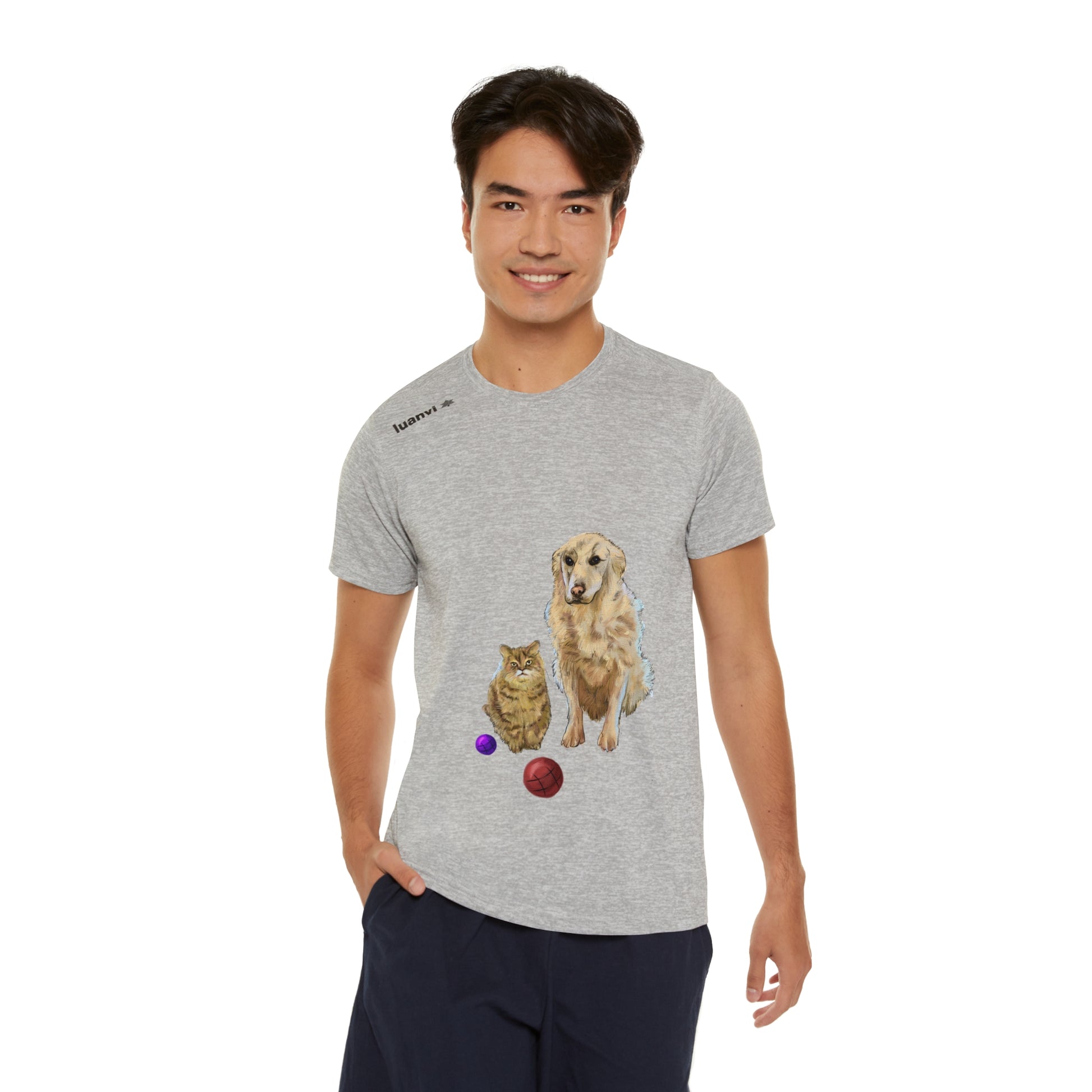 Introducing a unique and heartwarming t-shirt design featuring "Futu" the loyal dog and "Wally" the moody cat. This custom artwork, unlike typical graphic designs, is a beautifully detailed painting that captures the tender bond and unspoken love between these two companions as they patiently wait for their beloved father "Ron" to come home. The rich, textured brushstrokes bring Futu and Wally to life, making this t-shirt a wearable piece of art that celebrates their enduring connection and the joyful anticipation of reunion.