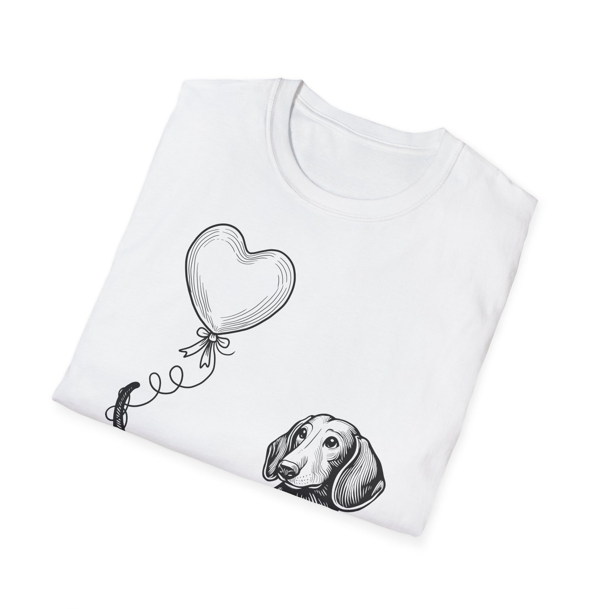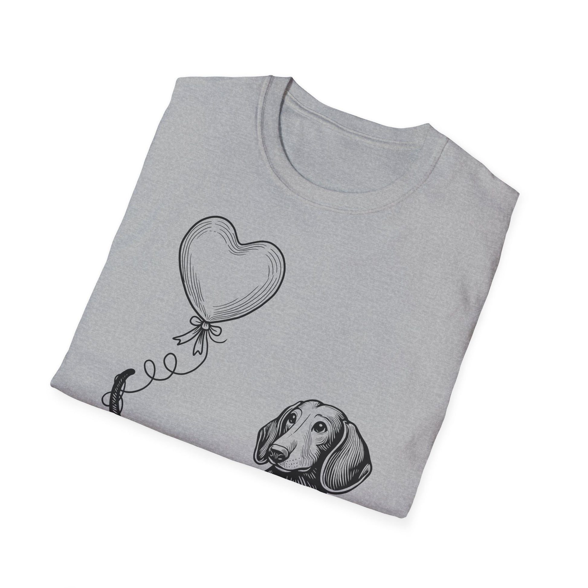 Bring Joy and Whimsy to Your Wardrobe with Our 'Dachshund Balloon' T-Shirt. Featuring an Adorable Dachshund with a Heart-Shaped Balloon, This Tee is Perfect for Dog Lovers Who Cherish Fun and Cute Designs.